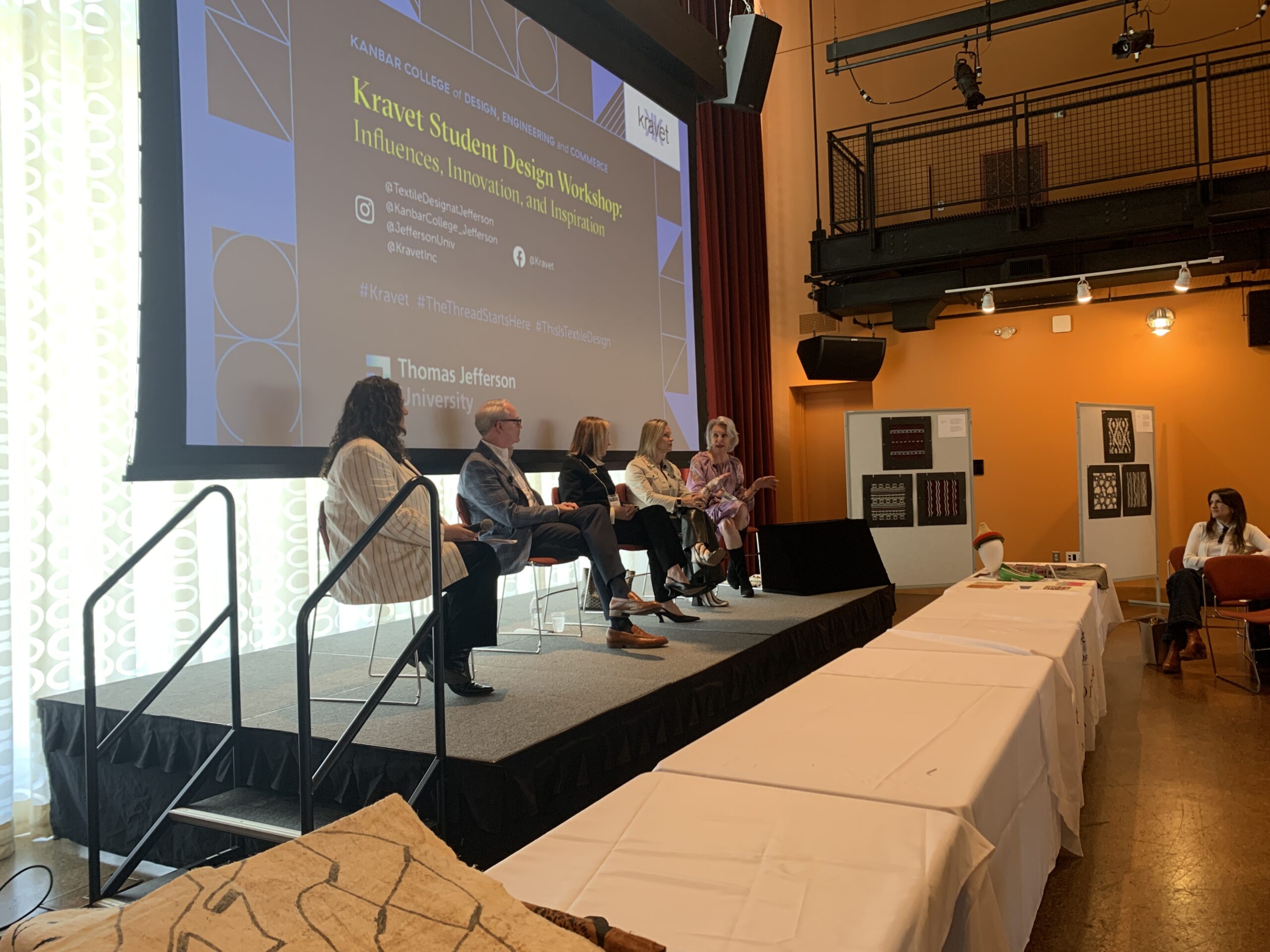 The Kravet Student Workshop started with a presentation from Scott Kravet, Chief Creative Officer of Kravet, and Lina Deeb Forrester, Creative Director of Kravet Archive. Their presentation, Threads of Time: A Journey Through Textiles, offered a glimpse into the Kravet Archive. Students were able to interact with historical textile documents and print-making tools and see how these historic items influence Kravet fabric collections today! Lina then moderated a panel on How An Archive’s History Influences Today’s Collections with Jefferson Professor and Design Center Curator, Jade Papa, along with Matthew Monk, Curator for Textiles at Winterthur, and Allie Alvis, Curator of Special Collections at Winterthur.