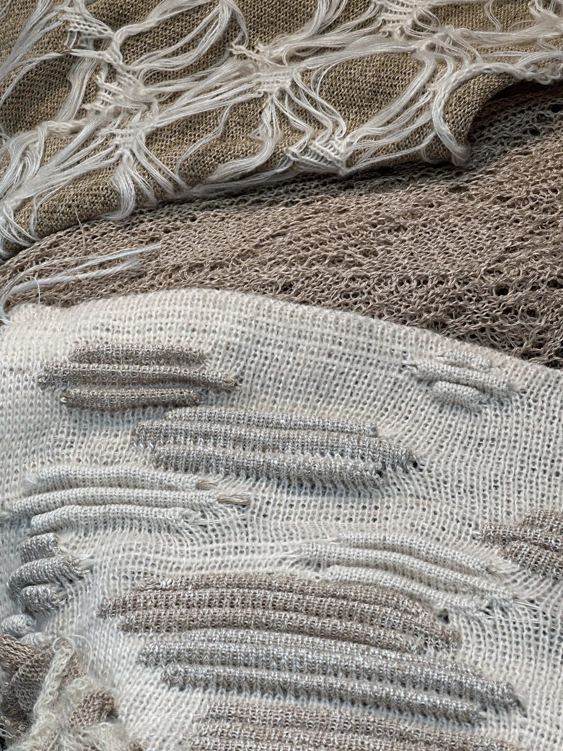 Each piece in the collection incorporates a variety of fibers intentionally selected to enhance depth and dimension. By integrating multiple fiber types within a single textile, the project introduces an element of unpredictability, mirroring the organic and evolving nature of abandoned spaces. This collection not only investigates the aesthetic and emotional resonance of abandoned places but also showcases the versatility and beauty of natural fibers. Through a thoughtful combination of materials, textures, and colors, the project captures the essence of stillness, decay, and transformation in a tactile, wearable form.