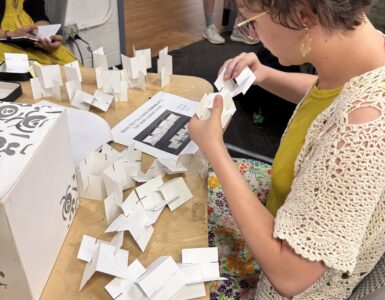 Kelly always enjoyed knitting; however, she considered it a hobby, not a job possibility. That is, until she took a weaving workshop with Jefferson textile design program director Marcia Weiss, who answered Kelly’s questions about the field and opened her eyes to its potential.